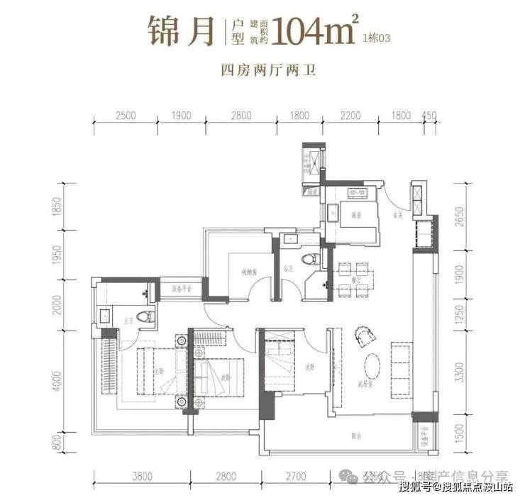 •锦月·建面约104㎡4房2厅2卫:南向四开间,6米阳台引景入室,自此生活融于风景