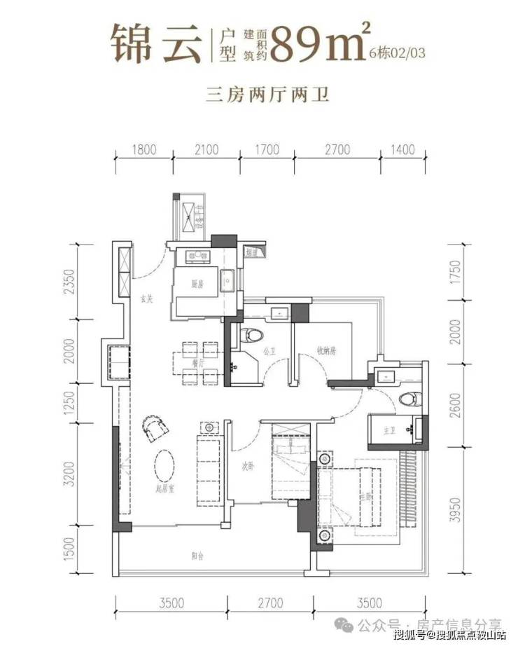 •锦云·建面约89㎡3房2厅2卫:南向阔厅,景致常驻,间间开阔,尺度舒适