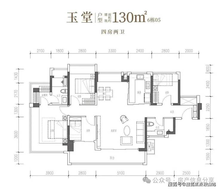 •玉堂·建面约130㎡4房2厅2卫:南向四开间,约14.7米IMAX光幕,尺度自成