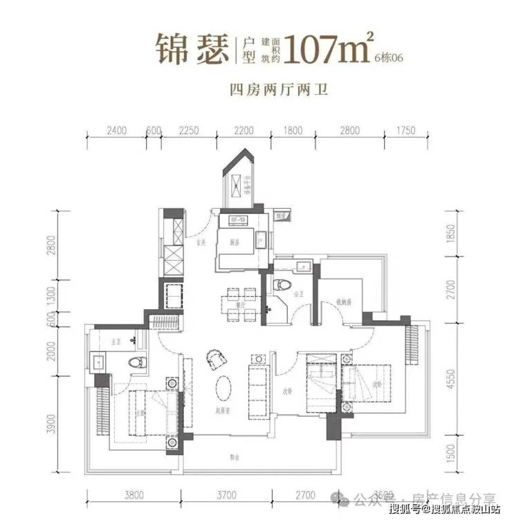 •锦和·约106㎡四房两厅两卫:南向四开间,一线园林景观,自在奢想