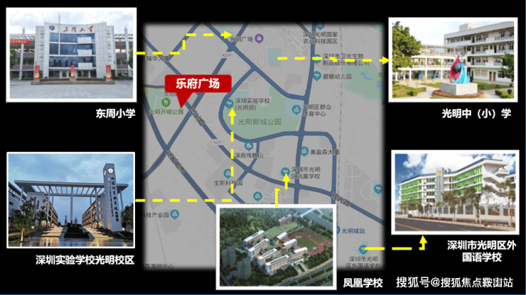 教育:乐府广场与多所名校为邻,全龄式教育远航无忧;约4km内全龄教育资源环伺,多所精英学府孕育理想学术氛围,如深圳实验光明学校(深圳四大名校)、光明实验学校、光明区凤凰学校、东周小学等。