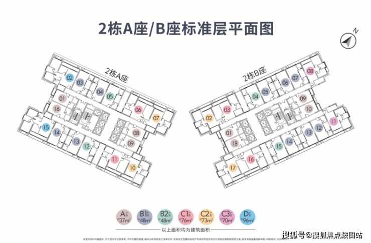 梯户比:7梯16户(2栋A单元)︱7梯18户(2栋B单元)