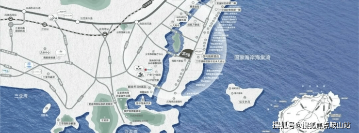 海棠湾核心地段,临海面河,玉带缠腰,河海汇聚呈“敛财”之势,背靠中国30000公里海岸线上最高的地标建筑保利瑰丽酒店,远侧是连绵起伏的环山,藏风聚气,得水为上,上风上水的绝佳风水宝地;