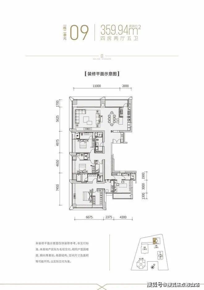 【建面约360平4房全套房2厅5卫】
