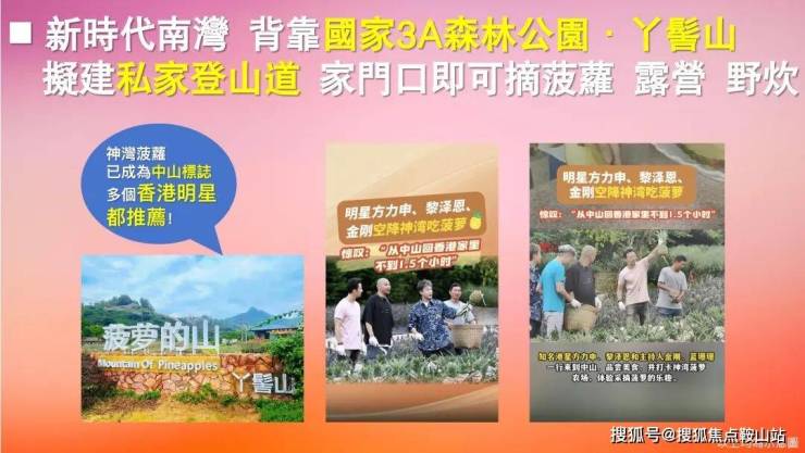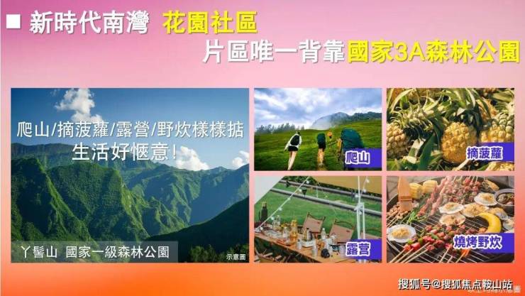 項目配備私家登山道(規劃中),出門即可享受爬山、摘菠蘿、露營、野炊等等