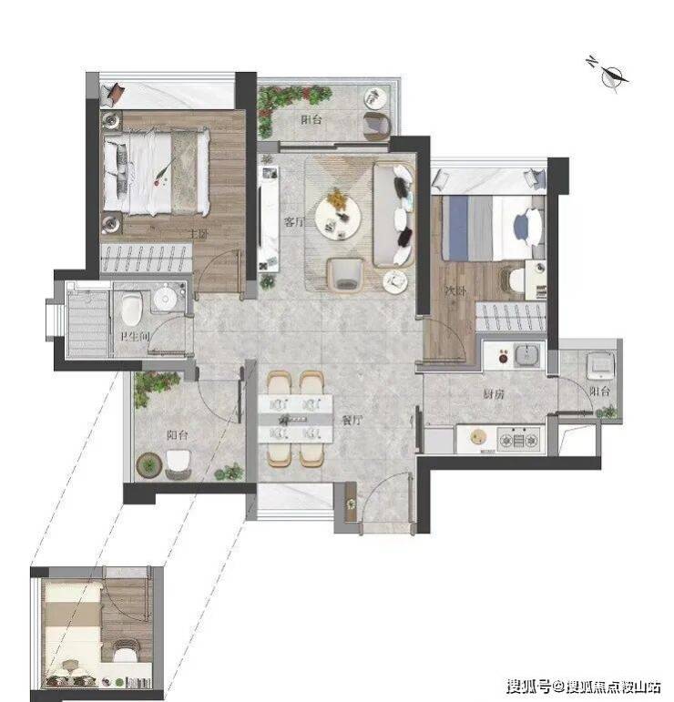 87㎡ 唯一厅房全朝南且望花园的三房户型