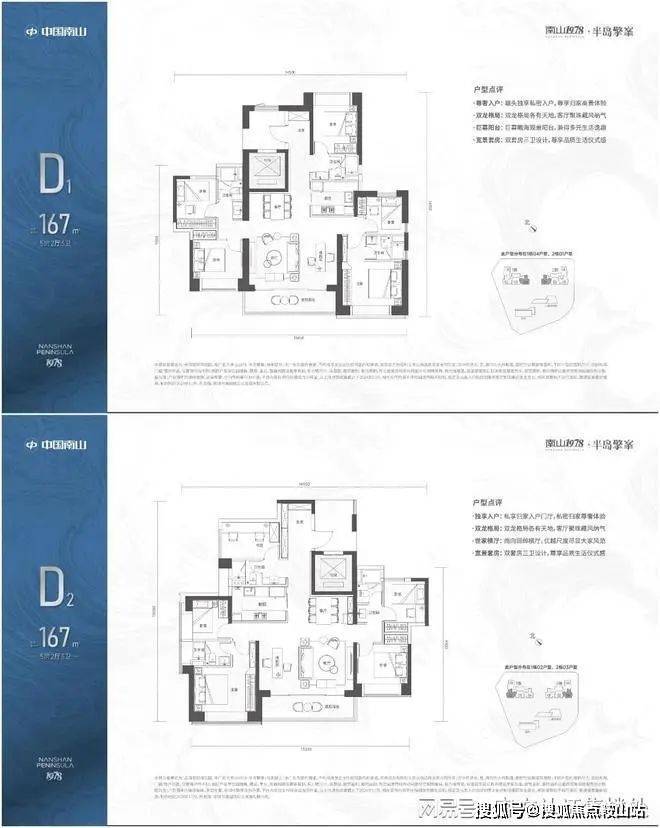 167㎡5+1房2厅3卫:位于32-43F高区,户数不多,南向看海,5+1房及3个卫生间的配置功能上完全满足了。