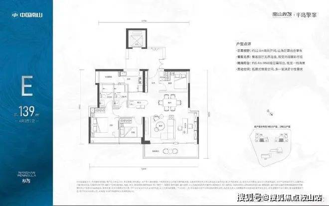 139㎡4房2厅2卫:位于32-43F高区,户数非常少,南向看海,独立电梯厅面积达到20㎡。