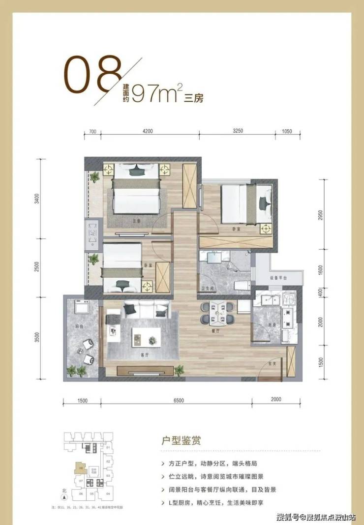 08约97㎡ 3房2厅1卫 总价:约1068万 西向
