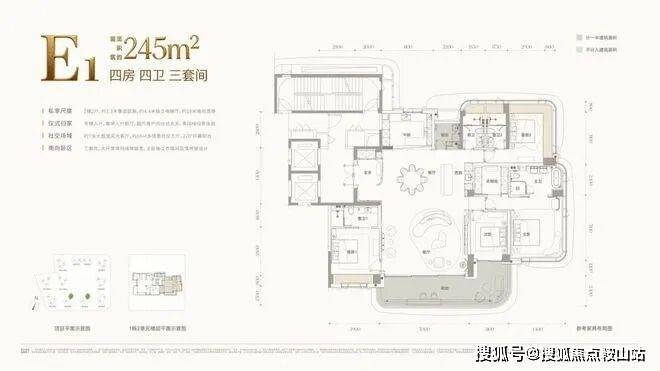 ✅ 245㎡4+1房四卫:经典通透格局,LDK全对流设计,同样配置三个套房;10.1米超宽阳台+7.1米客厅开间,采光视野无敌,客厅可灵活打造+1空间,满足家庭多元需求,改善属性拉满。