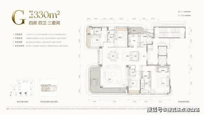 ✅330㎡4+1房四卫+家政套间:前海住宅“户型王者”实至名归,四大尺度卧室+三个套房设计,主卧空间奢阔感拉满;7.4米大开间客厅可拓展多功能空间,中西厨标配还带酒窖,家政套间独立分区,豪宅的精致与实用兼具。对比壹方玖誉488㎡,这款户型在景观、朝向和性价比上直接抗衡,堪称前海改善终极之选。