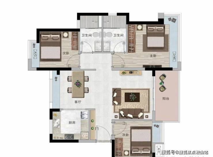 约88㎡【南向阔景·双阳台大三房】