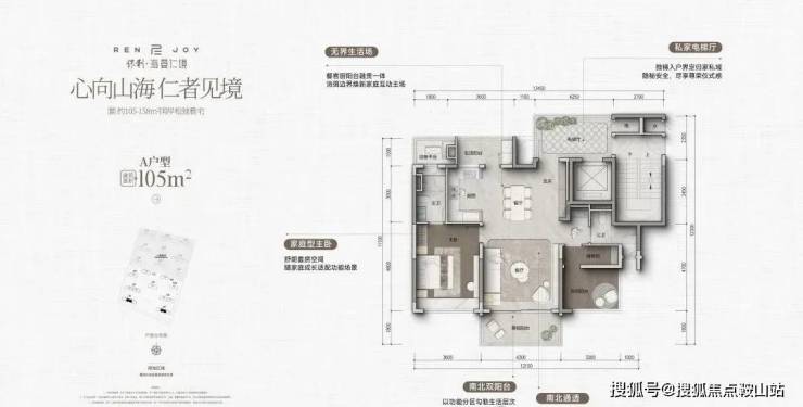 项目总建筑面积约16万平方米,容积率为1.6,规划18栋住宅,共计834户首层整体无住宅、全架空。主力户型建面约105-158平方米,车位配比约1:1.2,精装交付。层高约3.1-3.3米,户型南北通透、全明格局。社区内设多功能架空层,层高4.2-5.4米,致力于打造全龄化无界社区。