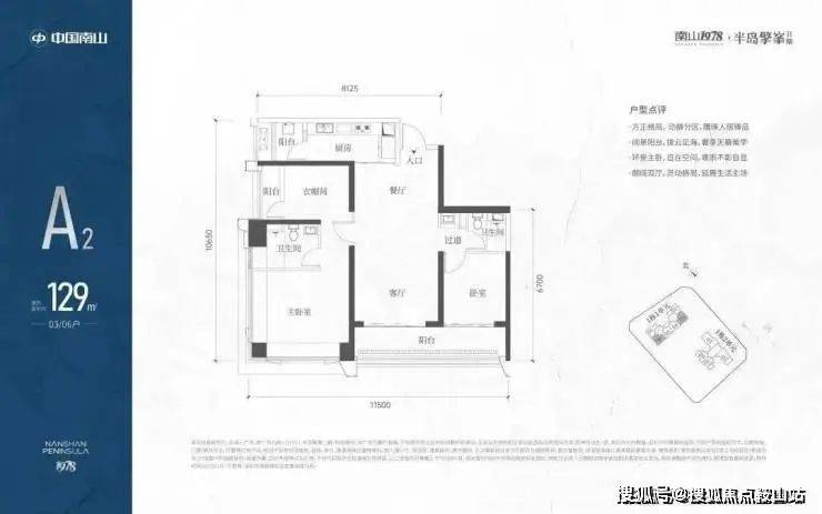 A3也是两条腿,分别是1-1栋04/05,主朝向是东南向,双龙抱珠格局。客厅拥有超大观景阳台,缺点是公卫是个暗卫,小次卧和主卫也对天井外走廊,采光不足。