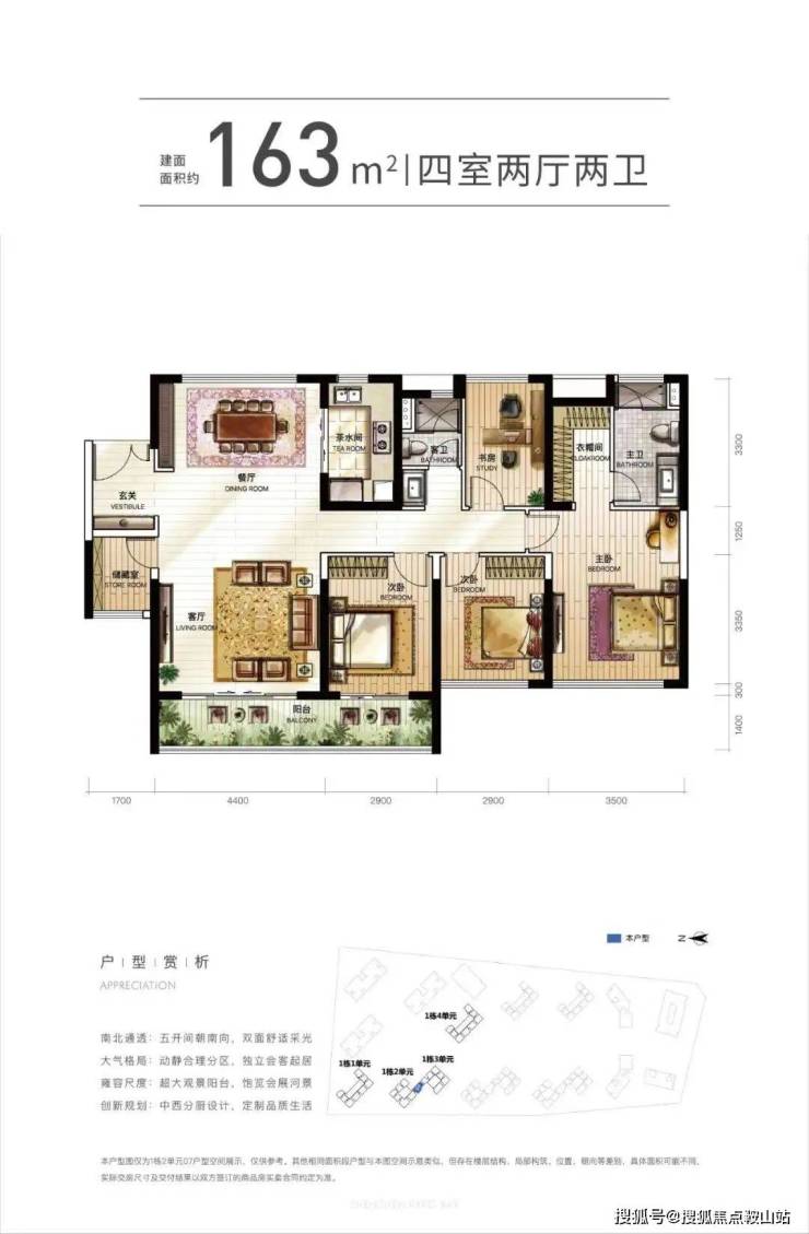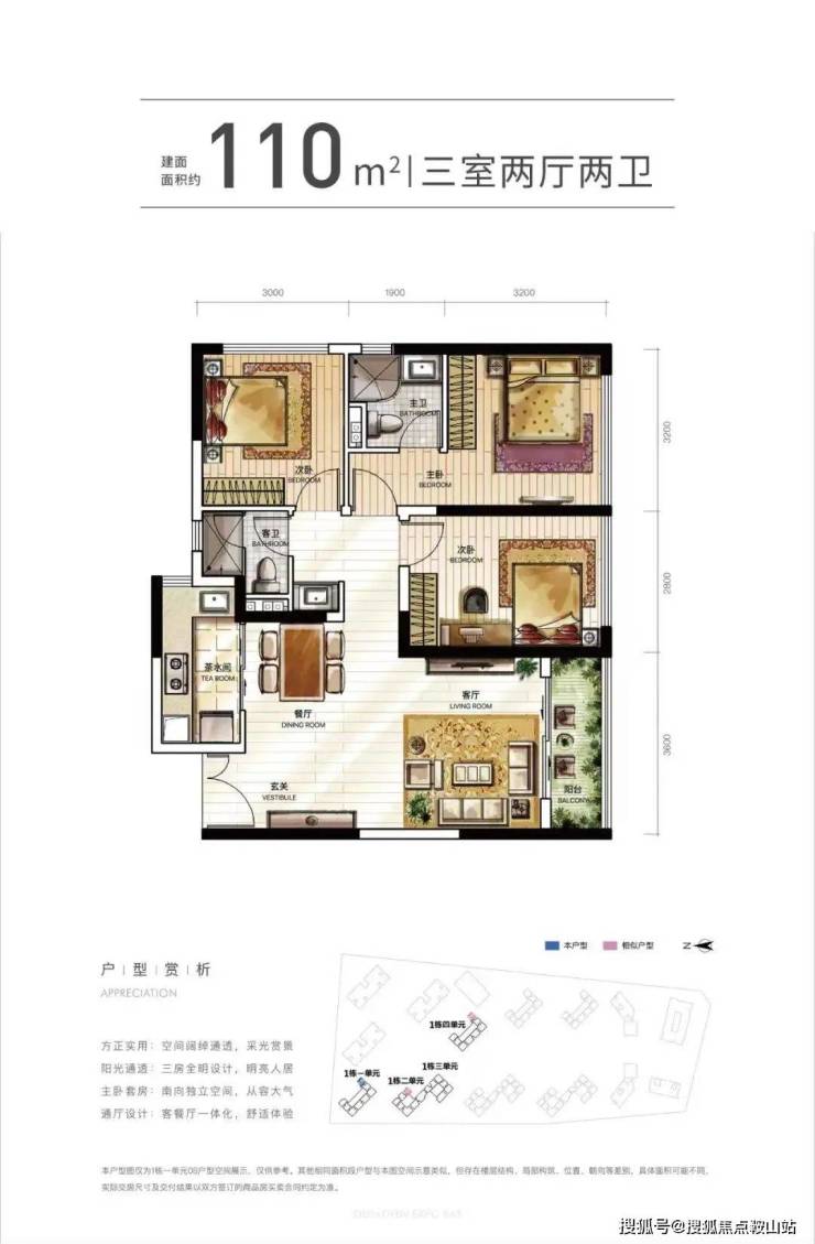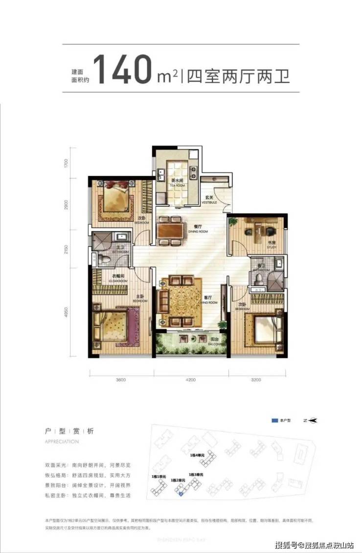 楼层说明:4个单元的商务公寓,1栋一/四单元31层,1栋二单元/三单元32层