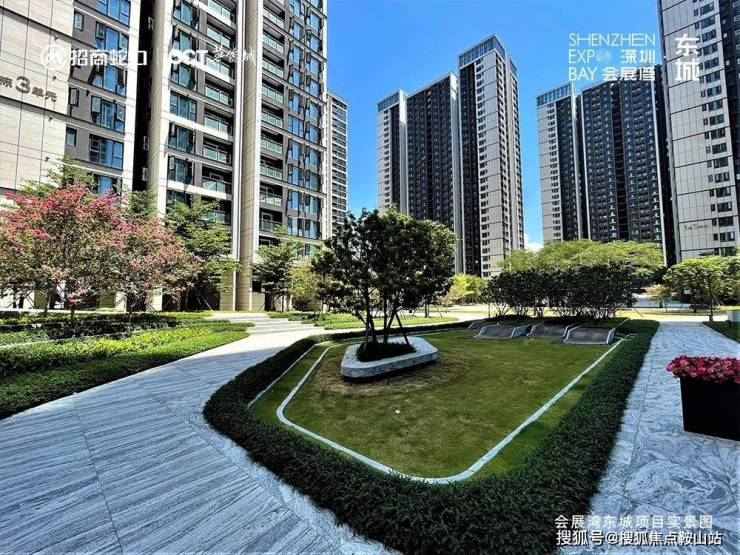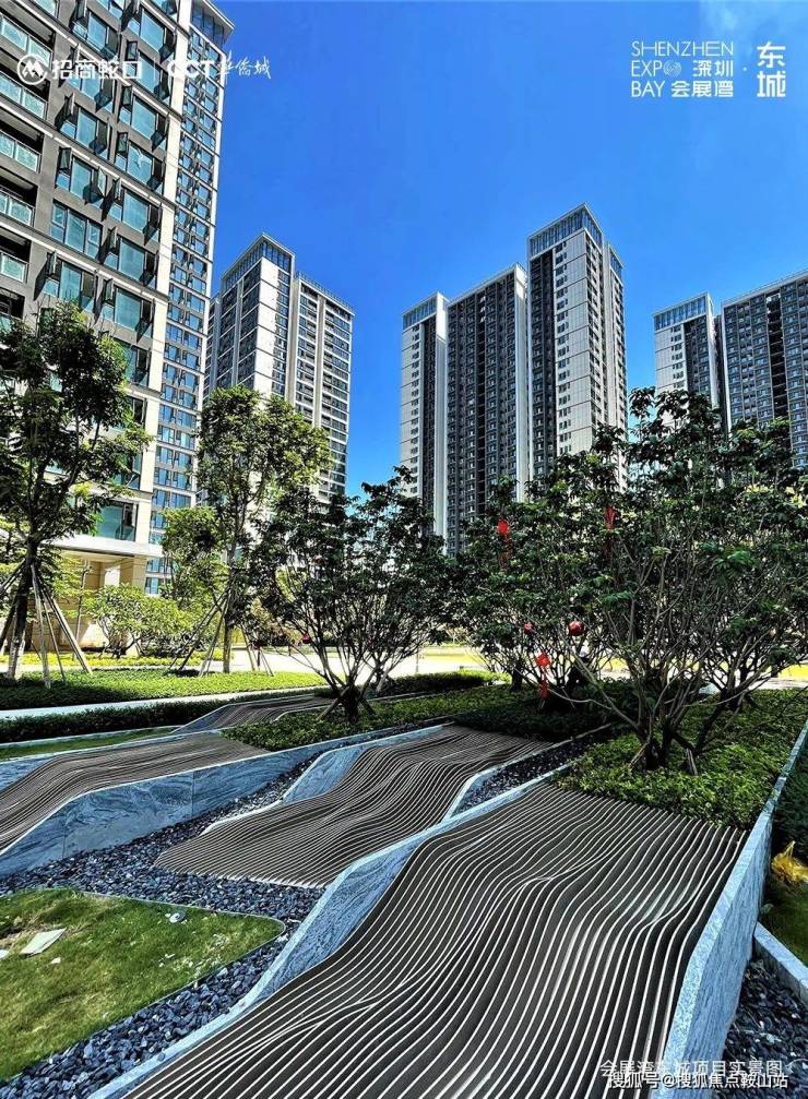 深圳会展湾·东城踞守深圳全新世界级展馆——深圳国际会展中心旁,与繁华与诗意为邻,自身打造约3.5万㎡现代艺术园林,开窗即享一线滨水风光,楼下就是四季全时景观饕餮。作为片区独树一帜的高品质纯粹住区,以匠心品质诠释着湾区时代质感的会展都会生活。