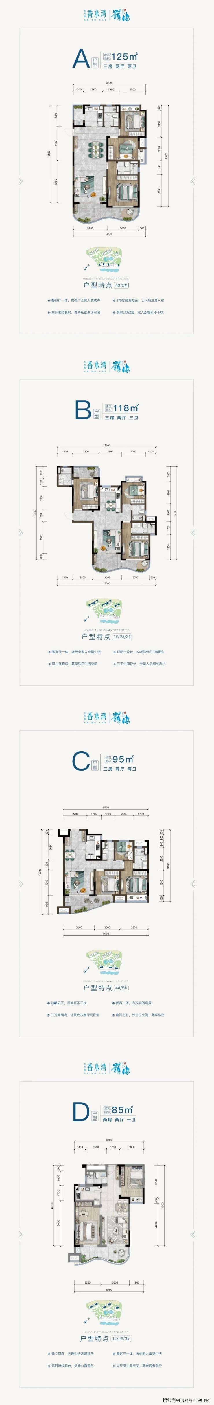 【户型】🔑85-125㎡观山瞰海两居、三居