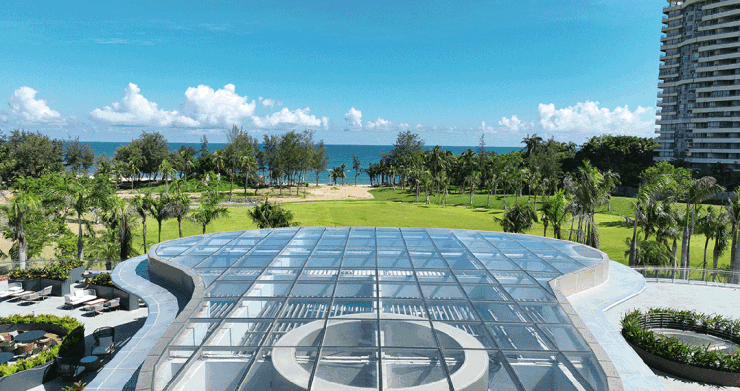 海浪曲线+LOW-E玻璃打造奢贵美学,成为香水湾珍珠海岸上最耀眼的视觉符号。