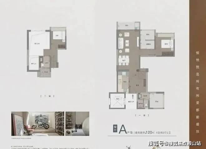 相比之下,项目的复式产品整体没有平层产品方正,比如下面这个120㎡的户型: