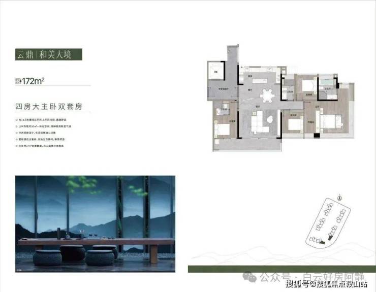 在产品打造上,项目采用公建化立面设计,通过客厅的宽大观景阳台和房间无柱全景观面飘窗台,视野开阔,实现0遮挡山景入户,使业主能与云山亲密接触。