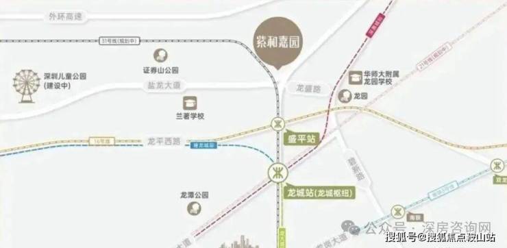 交通配套:项目距离16号地铁线“盛平站”约1.4公里,步行需要20分钟,该线路起自坪山田心,通至龙岗大运枢纽,7站到大运,可换乘3/14号地铁线,未来还有深惠城际/深大城际预计在2026年开通,届时可在一个小时内通往深圳各大区域。