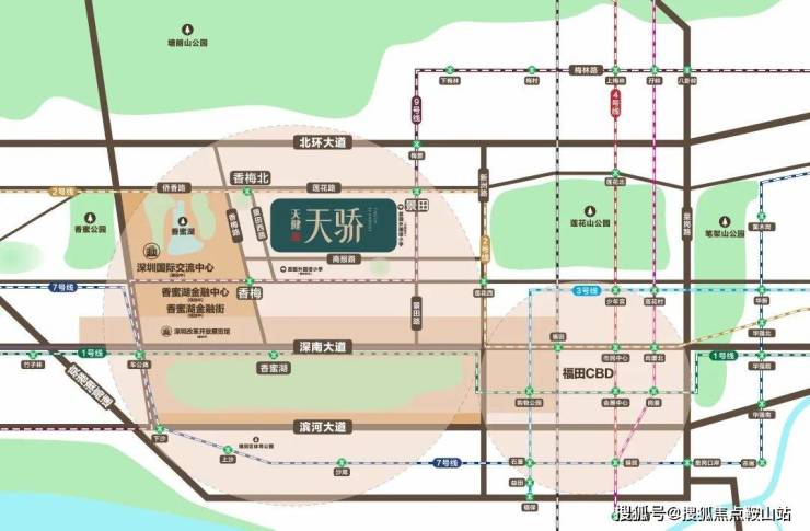 三维向心立体交通,10分钟城市高效出行。豪宅专线2号线、9号线景田站;迅接滨河大道、深南大道、北环大道等,30分钟通达全城各大枢纽。