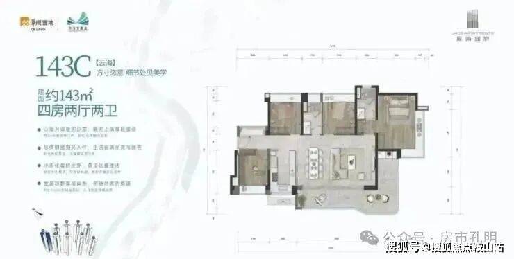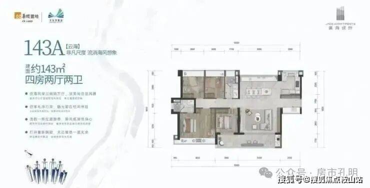待售户型:125-143m四房、95㎡三房