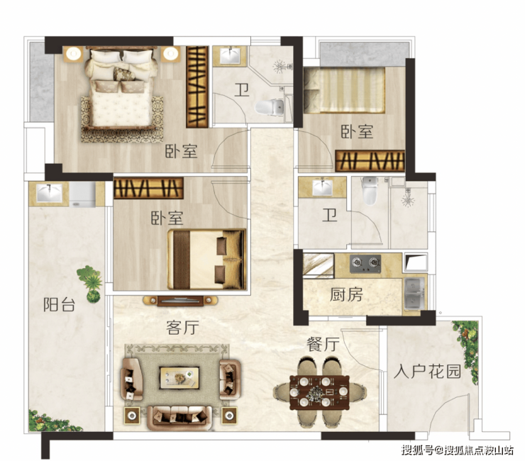 F户型 建面约92m² 3房2厅2卫