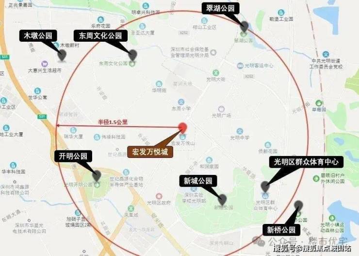 教育:项目半径1.5公里范围内分布有多所公里学校,如:东周小学、光明中学、光明小学、深圳实验学校光明部、深圳实验光明学校、凤凰学校等。另外范围内的万科光年四季小区正在建设一所小学。