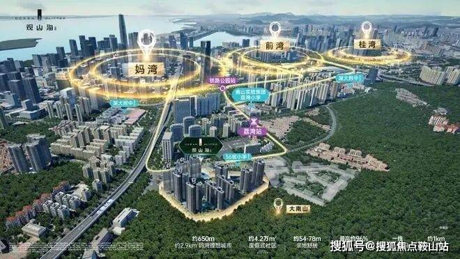在区位上,项目毗邻大南山,属于南山中心区荔湾板块,靠近前海妈湾片区和蛇口片区;附近有妈湾在售的万科瑧湾悦价格在10.5万,以及即将入市新盘有妈湾的前海招商臻玺预计在10万左右,项目这两个项目观山海花园并不在妈湾核心位置,属于比较边缘地界了,后面入市大概率价格方便也会稍微比较低一些,项目相比于这两个小区优势在于景观背山面海以及大社区花园。