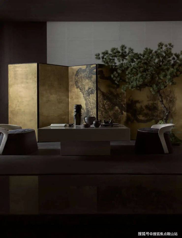 从客餐厅穿过一个内庭院,即来到隐于后方的茶室,暗金色屏风以大漆工艺打造。岭南茶文化历史悠久,早在唐代,茶圣陆羽便在《茶经》中记载了岭南茶食。独饮是一种闲情,而邀来三五好友同饮,更传达出岭南独特的款客之道。
