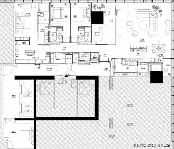 主力户型建面约340、480、620㎡,其中480㎡为LDKB一体化设计,X空间集艺赏、茶话、书房、私享四大功能,酒店式套房,为居住者营造舒心的体验。