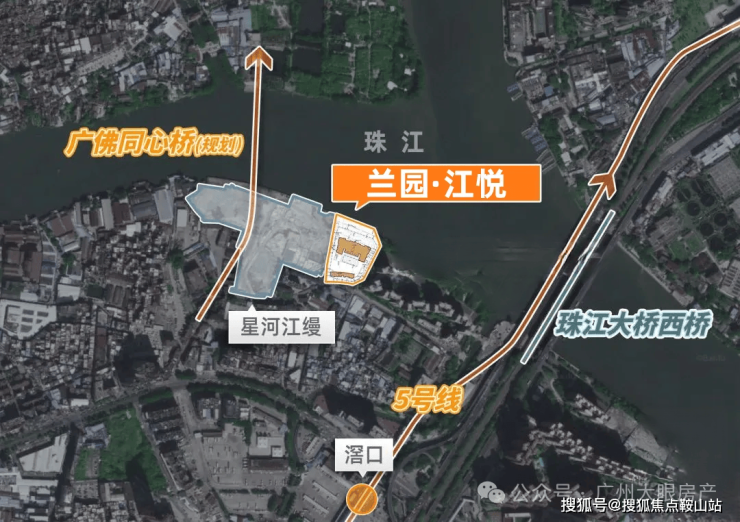 项目位置就在5号线滘口站附近,距离地铁口约1公里,项目一墙之隔,就是星河江缦及二手豪宅珠江鹅潭湾,不管是地铁出行还是自驾出行都十分便利。旁边规划的广佛同心桥,可直通佛山地区;白鹅潭大道未来也可通往广船和医药港等地。