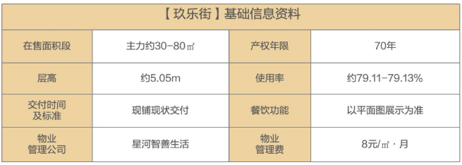 醇熟住宅社区、为商业经营提供保障,一楼街铺主力建面约30-80㎡,70年超长产权,层高约5.05米,外部空间利用率高,大部分为餐饮万能铺,灵活组合可满足多元化经营需求。