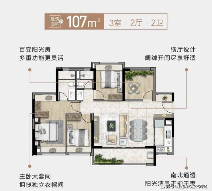 明星产品,宽敞横厅设计,客厅、主卧南北对流,搭配5.8米大阳台,超高性价比!