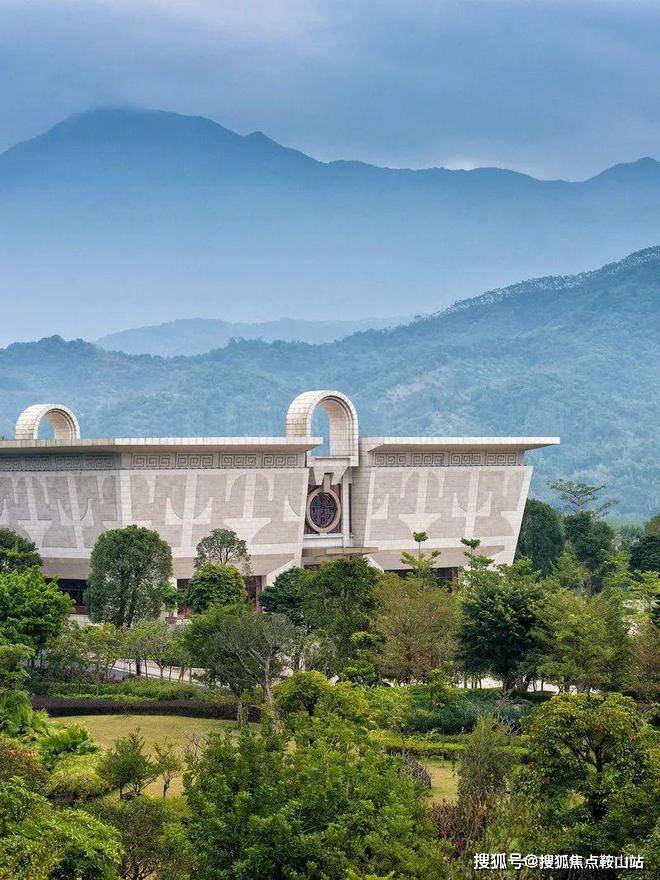 盛唐风格的建筑气势磅礴,雍容大气,香樟琉璃和苍劲青山连成一幅丹青水墨画,方圆交错,设计暗含诸多国学文化,亭台楼阁与山水相依,重檐殿顶建制格外亮眼。