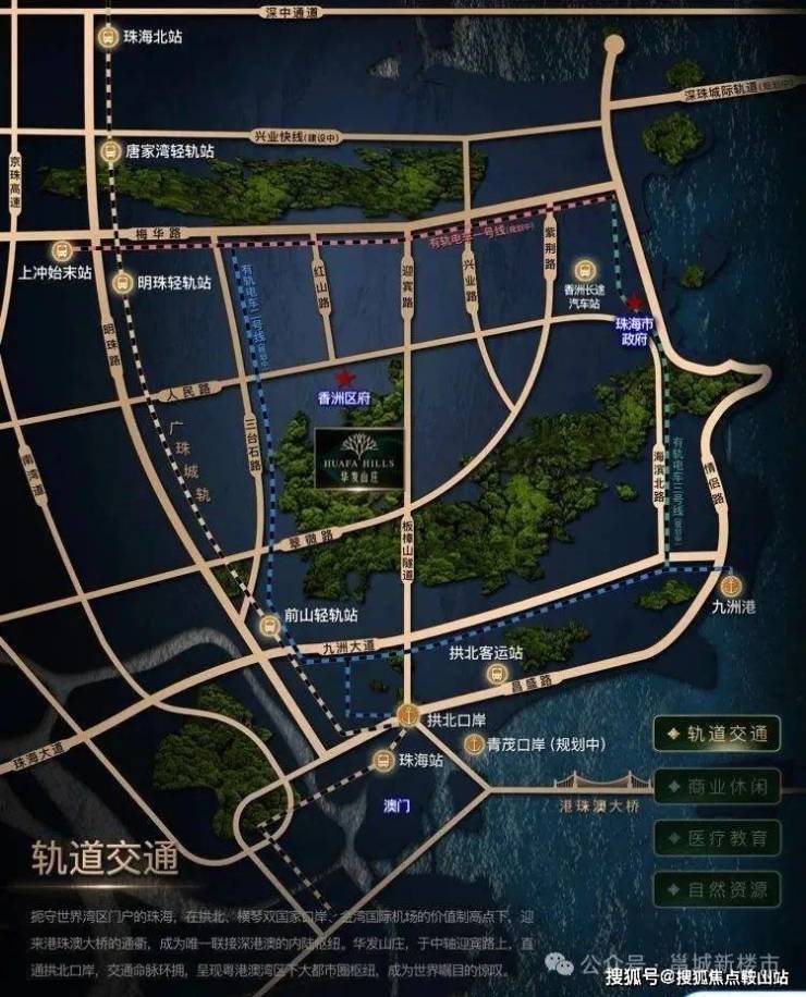交通方面:离澳门最近的别墅区,4.5KM直达拱北口岸,空、港、轨皆掌握时间的优先权,接驳生活新万象