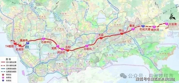 深大城际:该线路起自宝安机场T4站,途径宝安区、龙华区、龙岗区,最终至坪山区聚龙站,全线长69.2公里,设计时速160公里,从坪山-机场仅需40分钟,仁恒公园世纪三期售楼处电话☎:400-150-5057全线地下敷设11个站点,分别是T4枢纽、机场东、黄麻布、石岩中心、龙胜、民治北、五和、白泥坑、大运、坪山、聚龙,另外预留惠州3个站点。