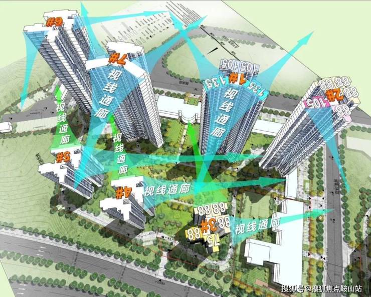 小区根据地势,对比路面抬高6米,打造更极致,更私密中心园林;建筑呈点列式布局,户户朝南,各户型均能享受全南向采光!
