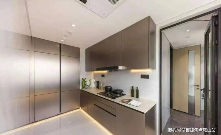 楼王户型,位于花园正中间的位置,最安静。综合实用率为78.83%,实用率最高,唯一带生活阳台的户型。专梯专户,电梯厅更大,带独立保姆间、储物间和玄关。空间尺度很足,使用功能上几乎没有缺点。中西厨餐客厅一体,朝正东或正西,多面采光。