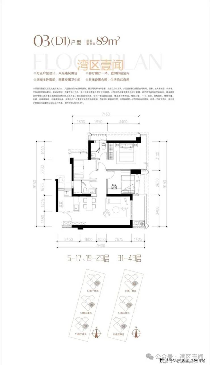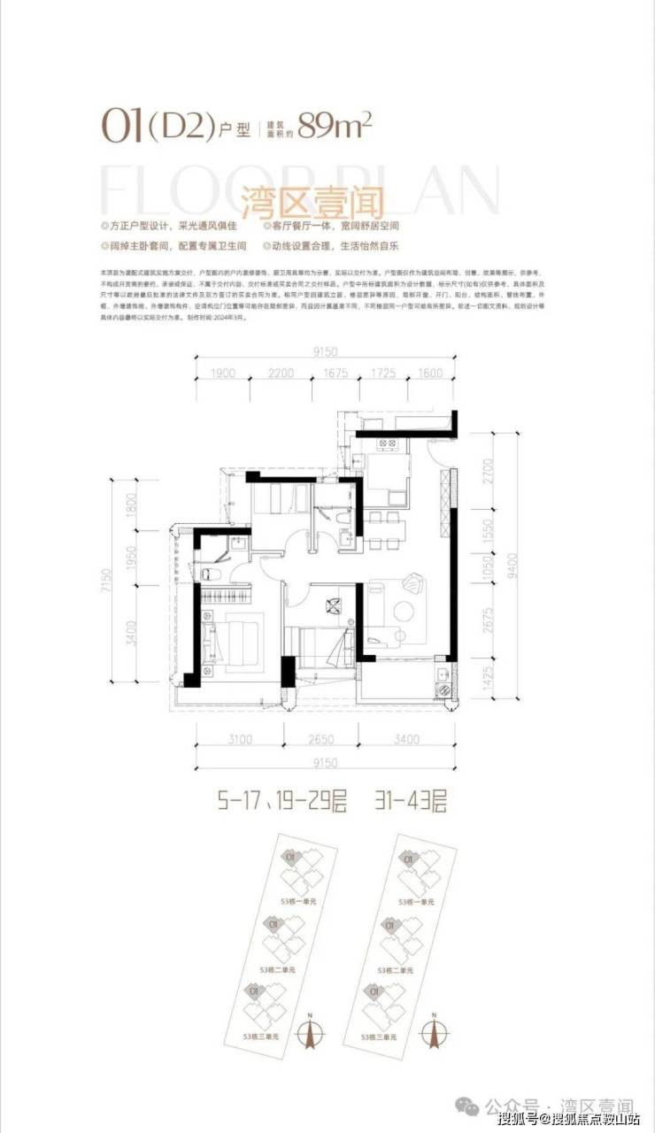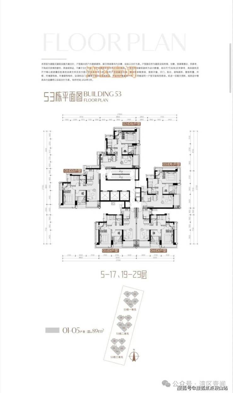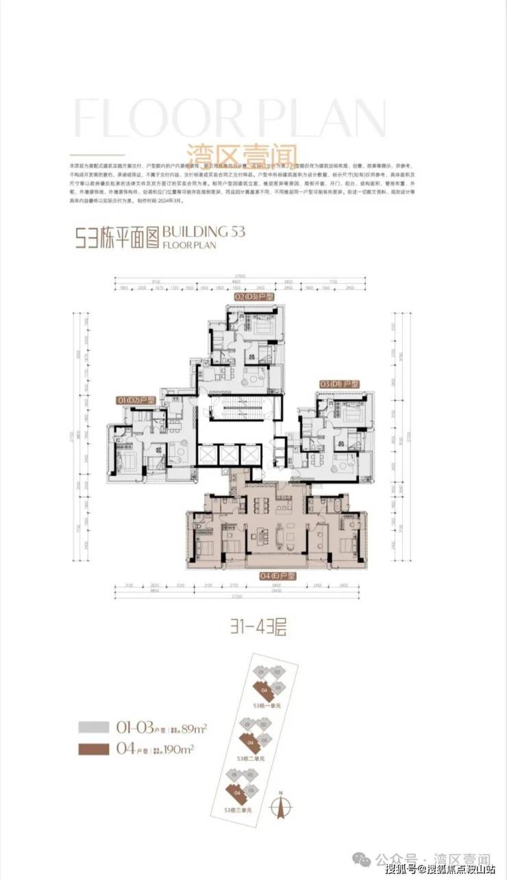 此次推售产品为53栋3单元 3梯5户/3梯4户 89/190㎡