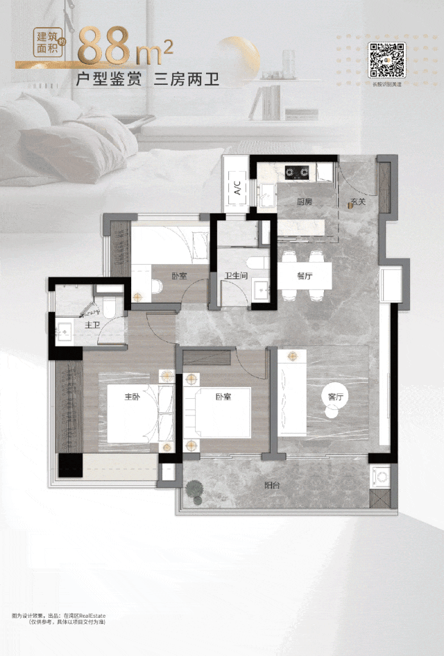 建面约88平户型,则是上述户型的Plus版本。