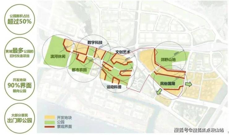 结合历史文保建筑培育文化聚集地,约14个大小生态主题公园构筑生活空间;