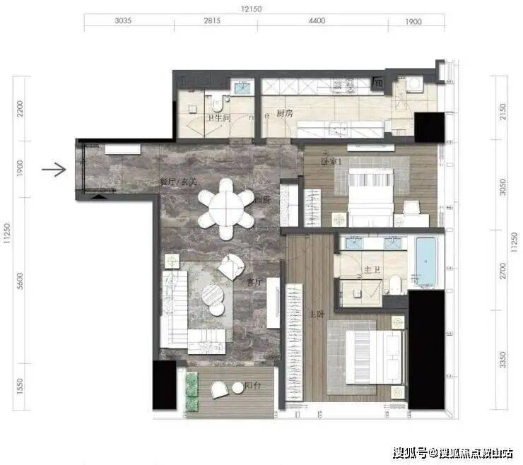 约164㎡2房2厅2卫(独立入户玄关,动静分离,约33㎡豪华主卧,承载品质生活)