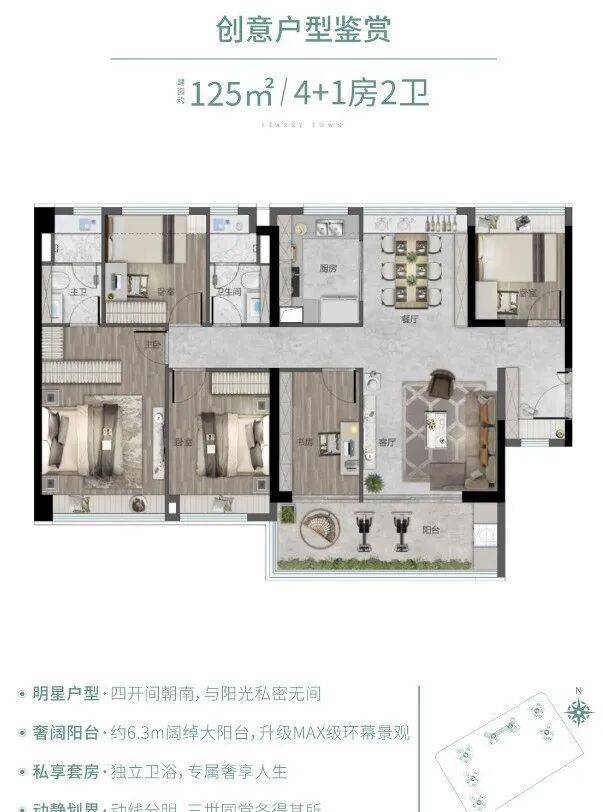最灵活 | 125㎡ 4+1房·五开间朝南