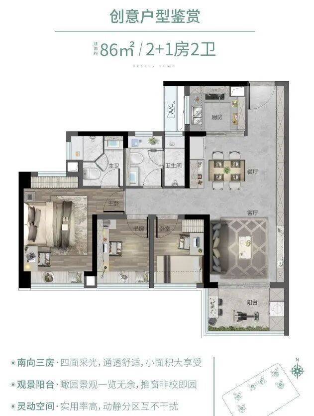产品:全南向 86㎡/107㎡/125㎡三至五房
