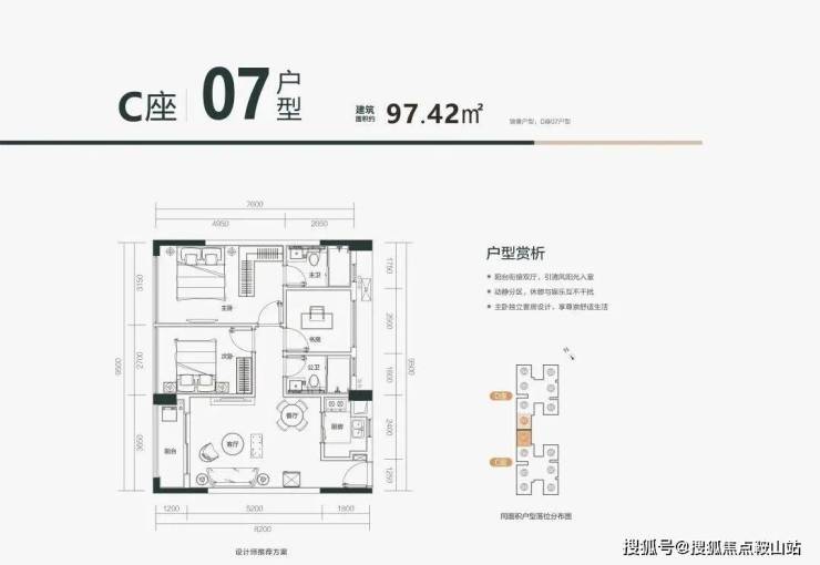 🏡C07户型:约97㎡改善级舒适大三房户型