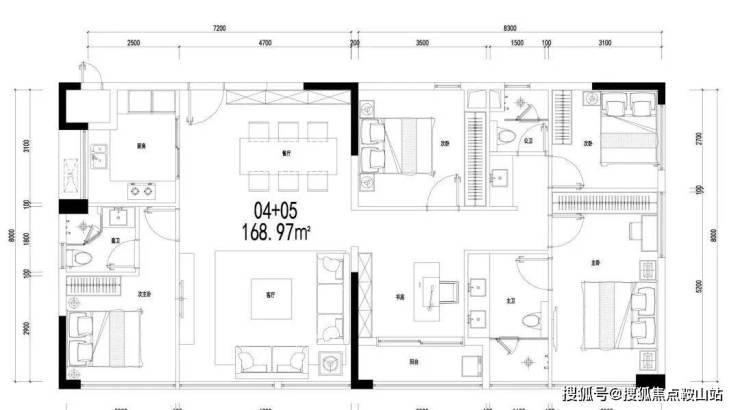 🏡C04+05户型:约169㎡阔绰舒居4房,高处视野私享无遮景致