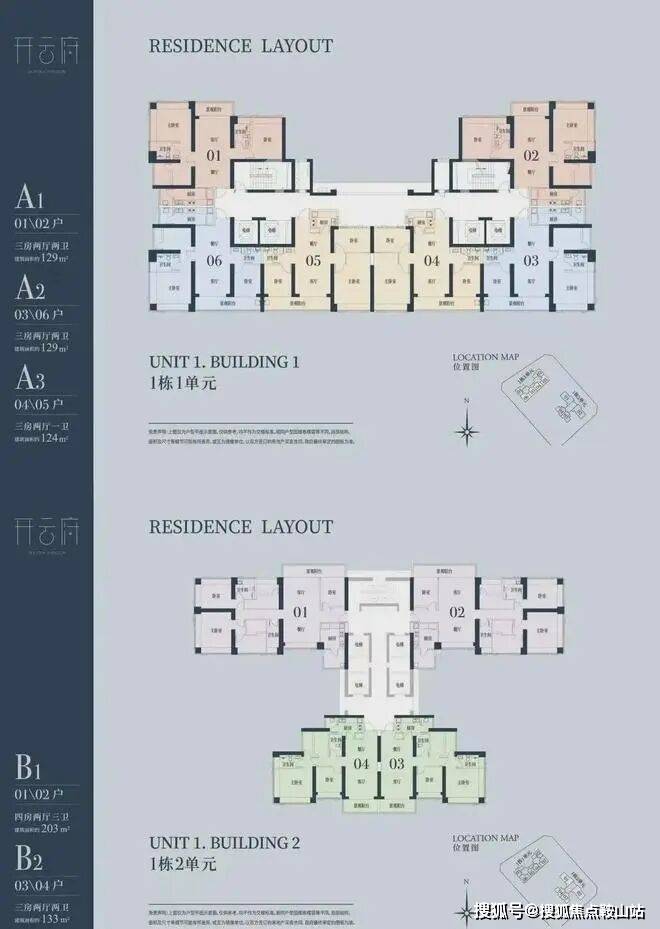 1栋一单元A1、A2户型:面积约为129㎡