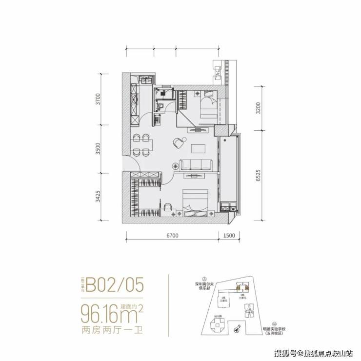 分布在02(东北向)和05(西南向),作为「富通九曜公馆」入门级户型,细看主卧空间很大,硬隔个2+1房还凑合。但无论是二房还是2+1,一卫其实并不匹配福田这个位置的主流群体。